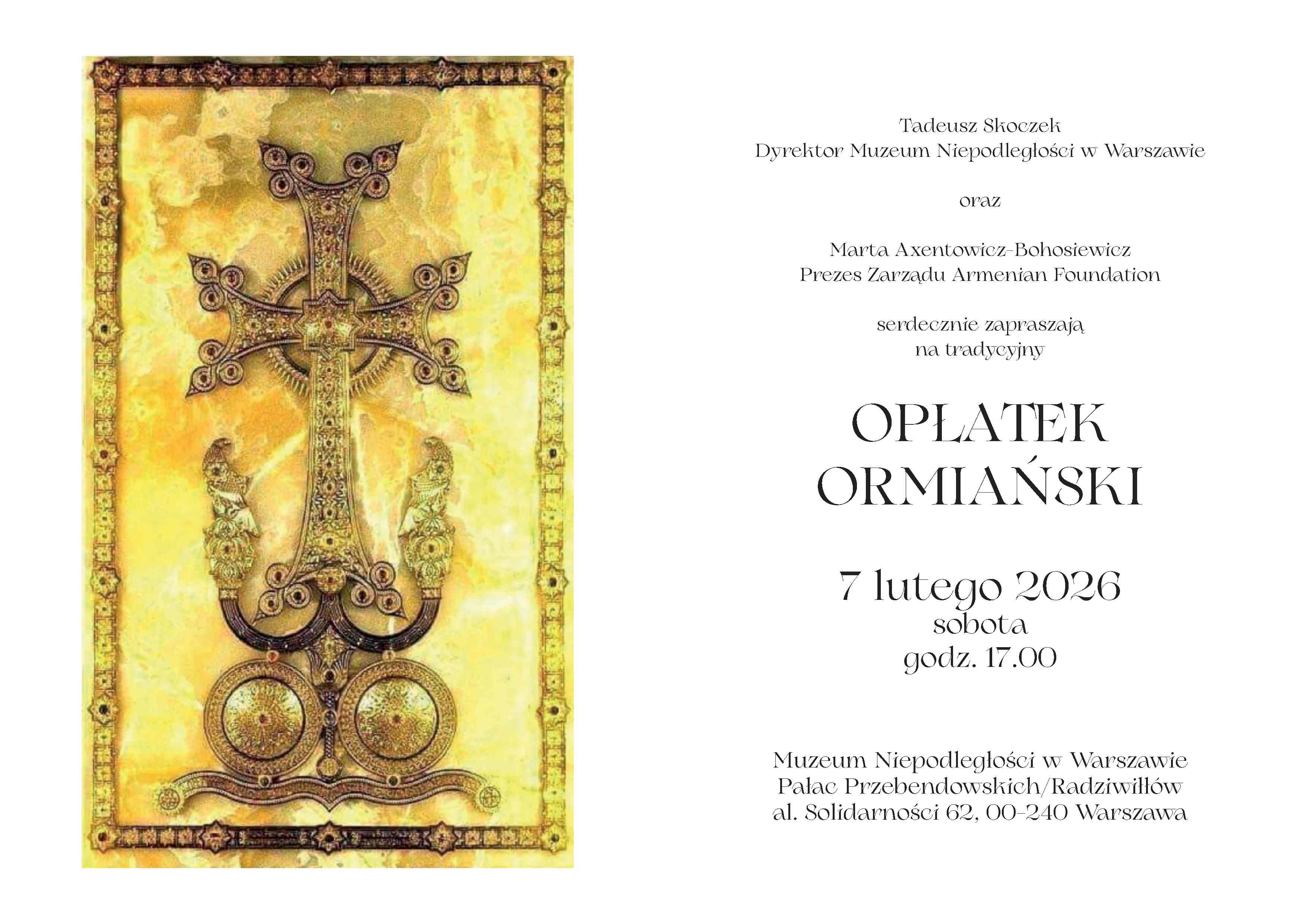 Serdecznie zapraszamy na tradycyjny Opłatek Ormiański, który odbędzie się 7 lutego 2026 roku o godz. 17:00 w Muzeum Niepodległości w Warszawie al. Solidarności 62.