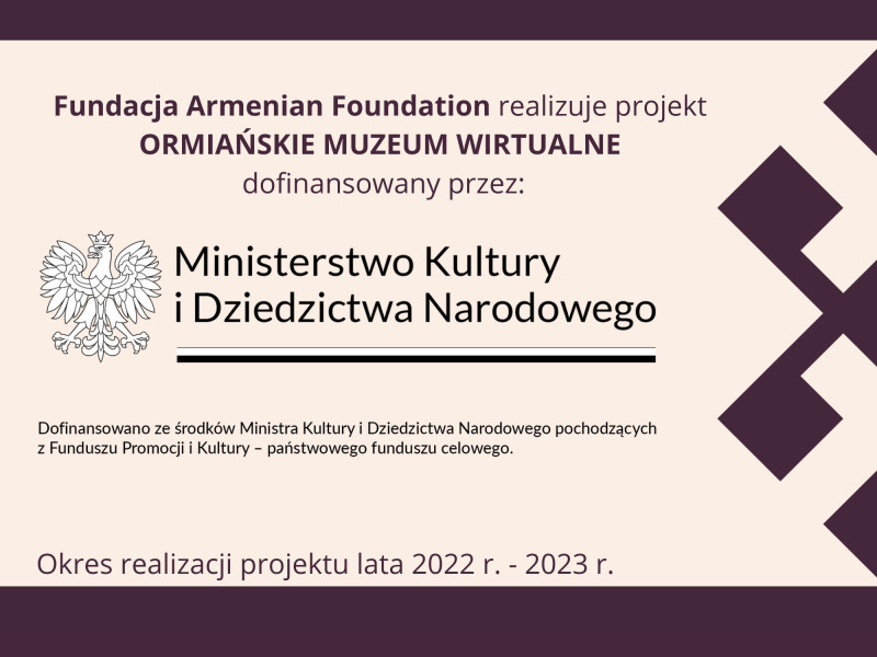 Projekt pn. Ormiańskie Muzeum Wirtualne odzwierciedla i zaspokaja potrzebę zgromadzenia armeników i łatwego ich udostępnienia szerokiemu gronu zainteresowanych. Na zbiór składają się artefakty porozrzucane w polskich muzeach i bibliotekach oraz wyjątkowe eksponaty znajdujące się w kolekcjach rodzinnych. W 1933 roku otwarto Archidiecezjalne Muzeum Ormian we Lwowie - zbiór był eksponowany w Pałacu Arcybiskupim Kapituły Ormiańskiej. Myśl rozbudowania kolekcji, która przyświecała środowisku ormiańskiemu nie została zrealizowana z powodu wybuchu II wojny światowej, ekspatriacji Ormian na obecne tereny RP, a także zniszczeniu i rozkradzeniu zbioru przez Sowietów. Zdekompletowany zbiór muzealny znalazł się w polskich muzeach i archiwach na terenie całego kraju. W roku 1999 Muzeum Narodowe w Krakowie zaprezentowało zbiór armeników na wystawie pn. " Ormianie Polscy odrębność i asymilacja". Od tamtego wydarzenia minęły ponad 23 lata. W nowoczesny i nowatorski sposób przybliżamy Państwu kulturę, historię i dziedzictwo Ormian Polskich, którzy od ponad 650 lat żyją w Rzeczypospolitej. Zapraszamy do wirtualnego spaceru po naszym Muzeum na stronie https://muzeumormianskie.pl/